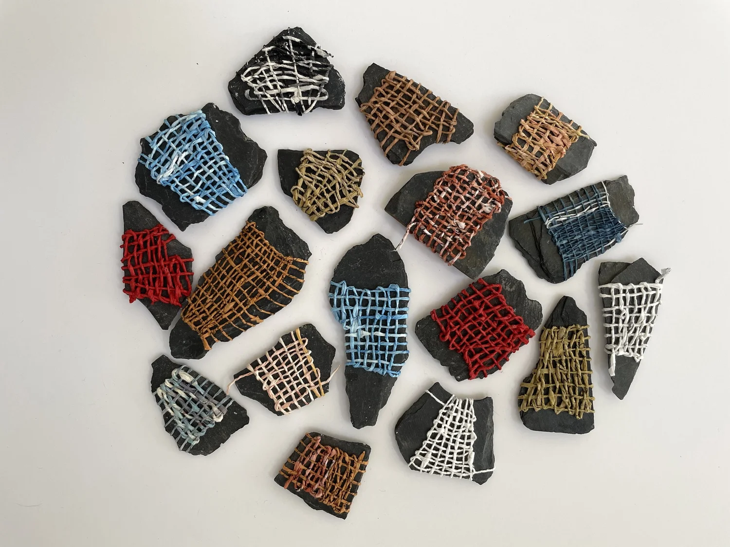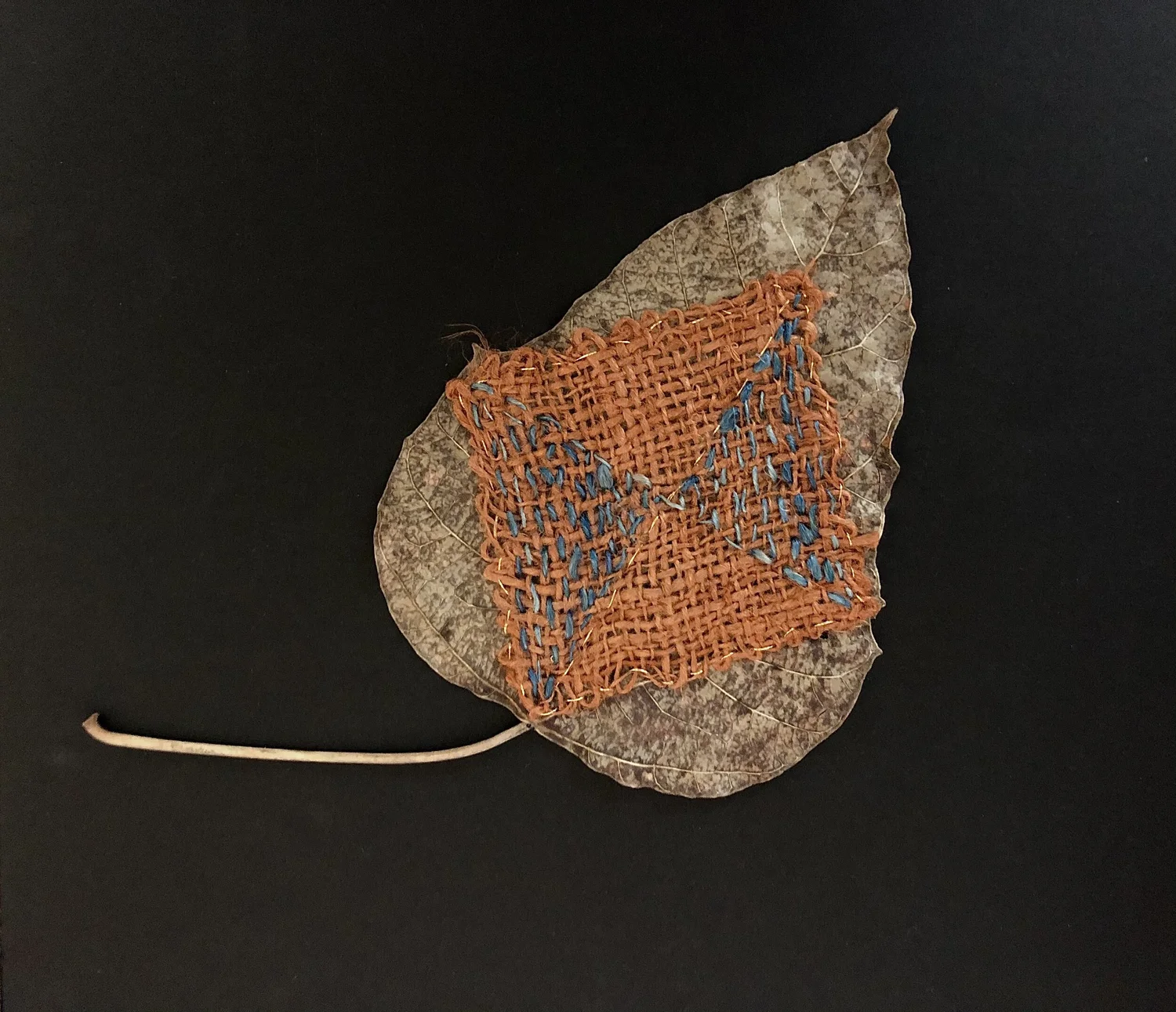Monhegan crab shell with indigo dyed linen thread